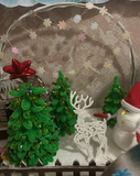 Новогодние и зимние сюжеты семейного творчества украсили фойе детского сада и внесли неповторимый элемент в новогодний интерьер.